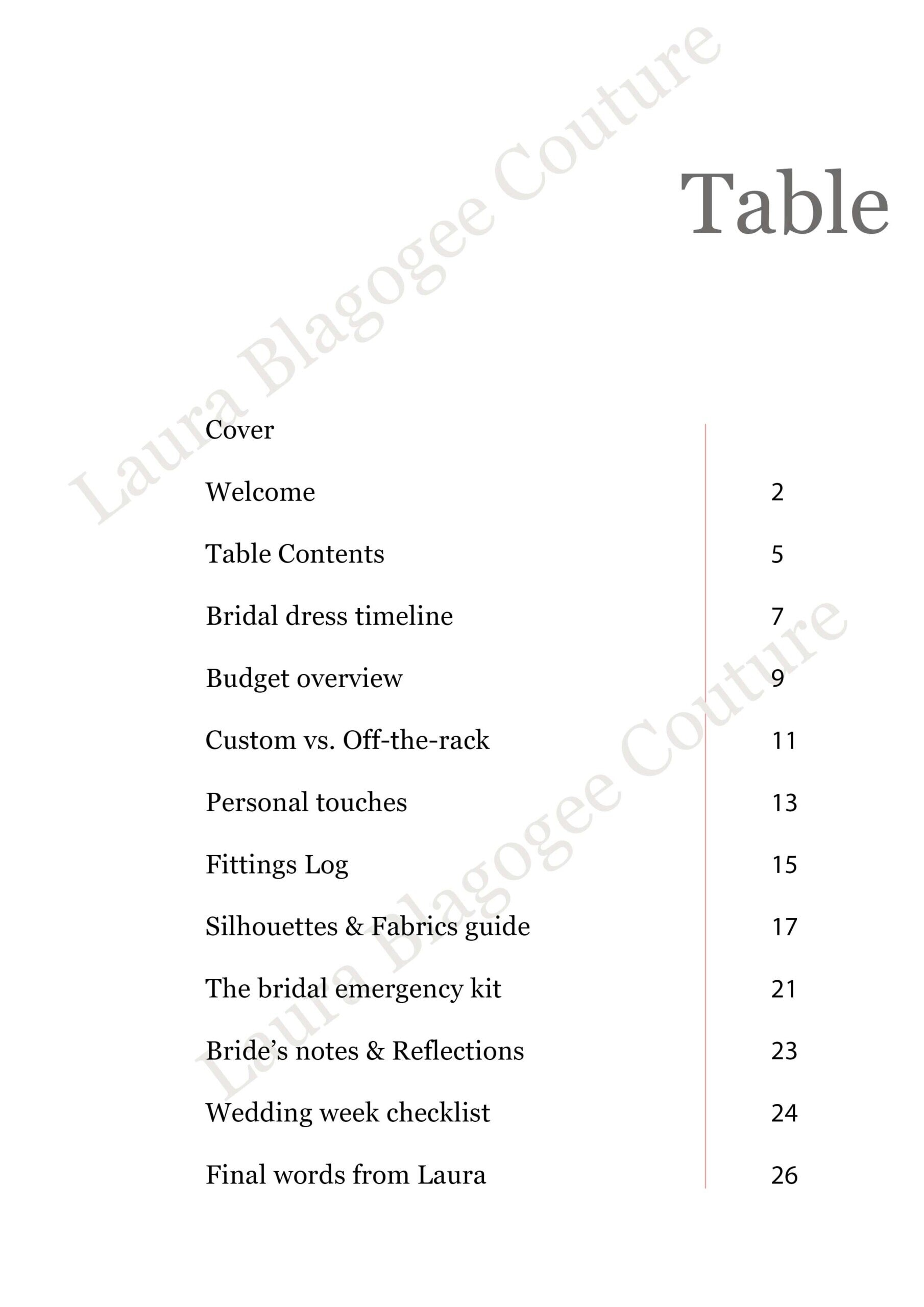 The Bridal Dress Planner — by Laura Blagogee Couture (english version)